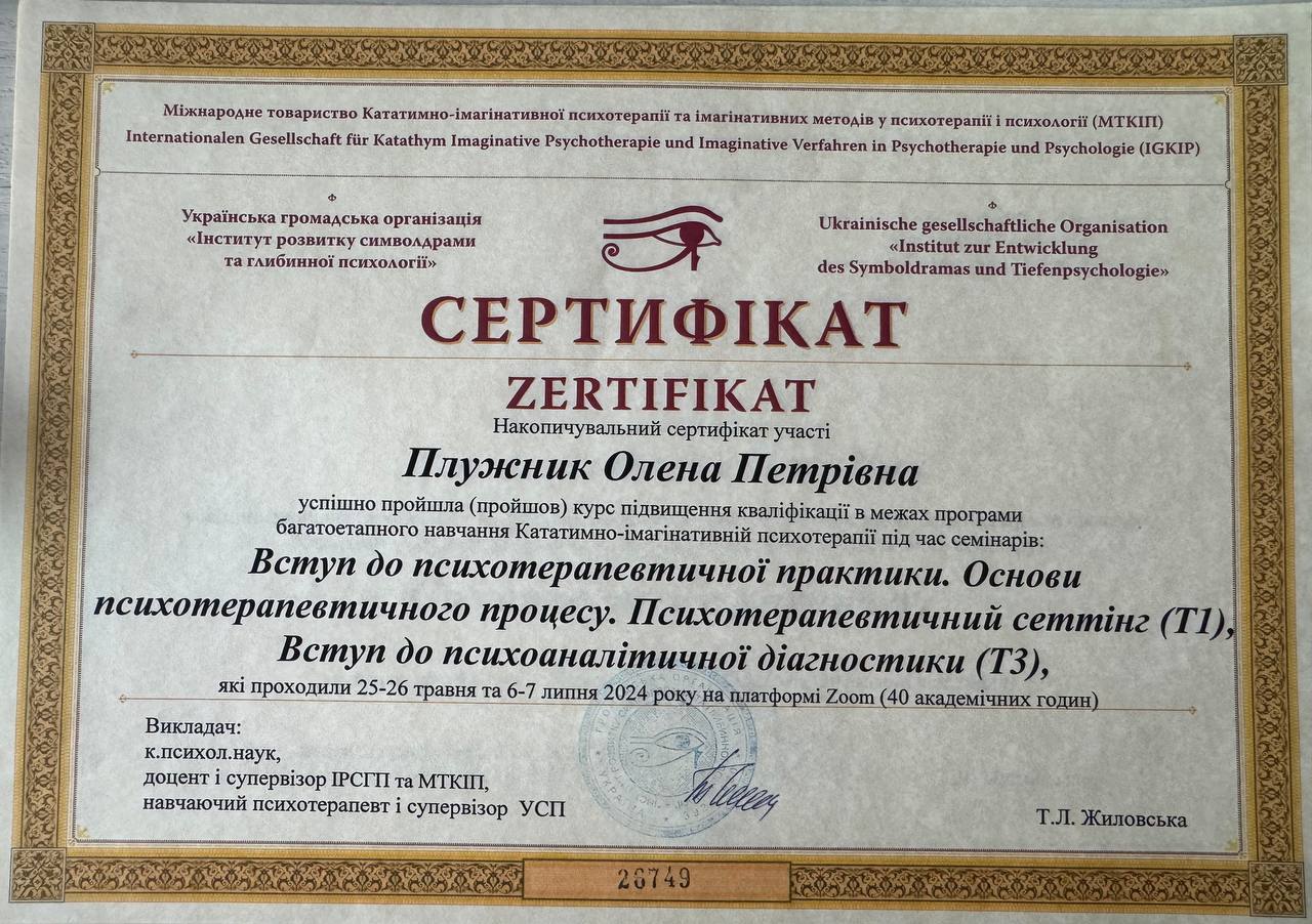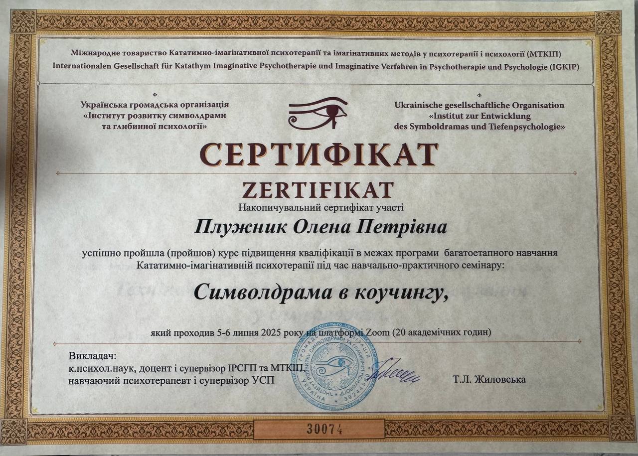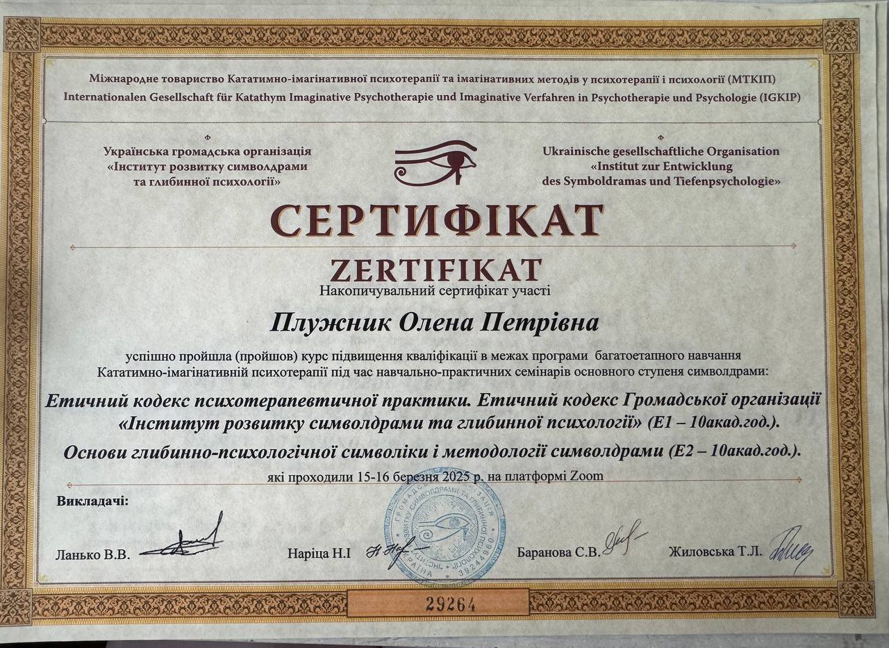 1.Диплом. Харьковский национальный педагогический университет им. Г.С. Сковороды. Специальность «Психология».