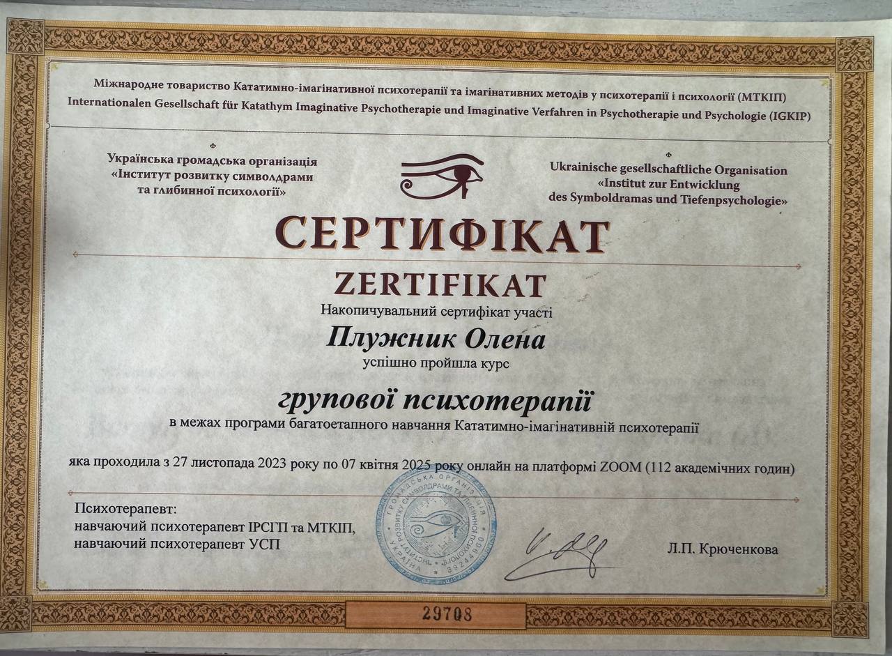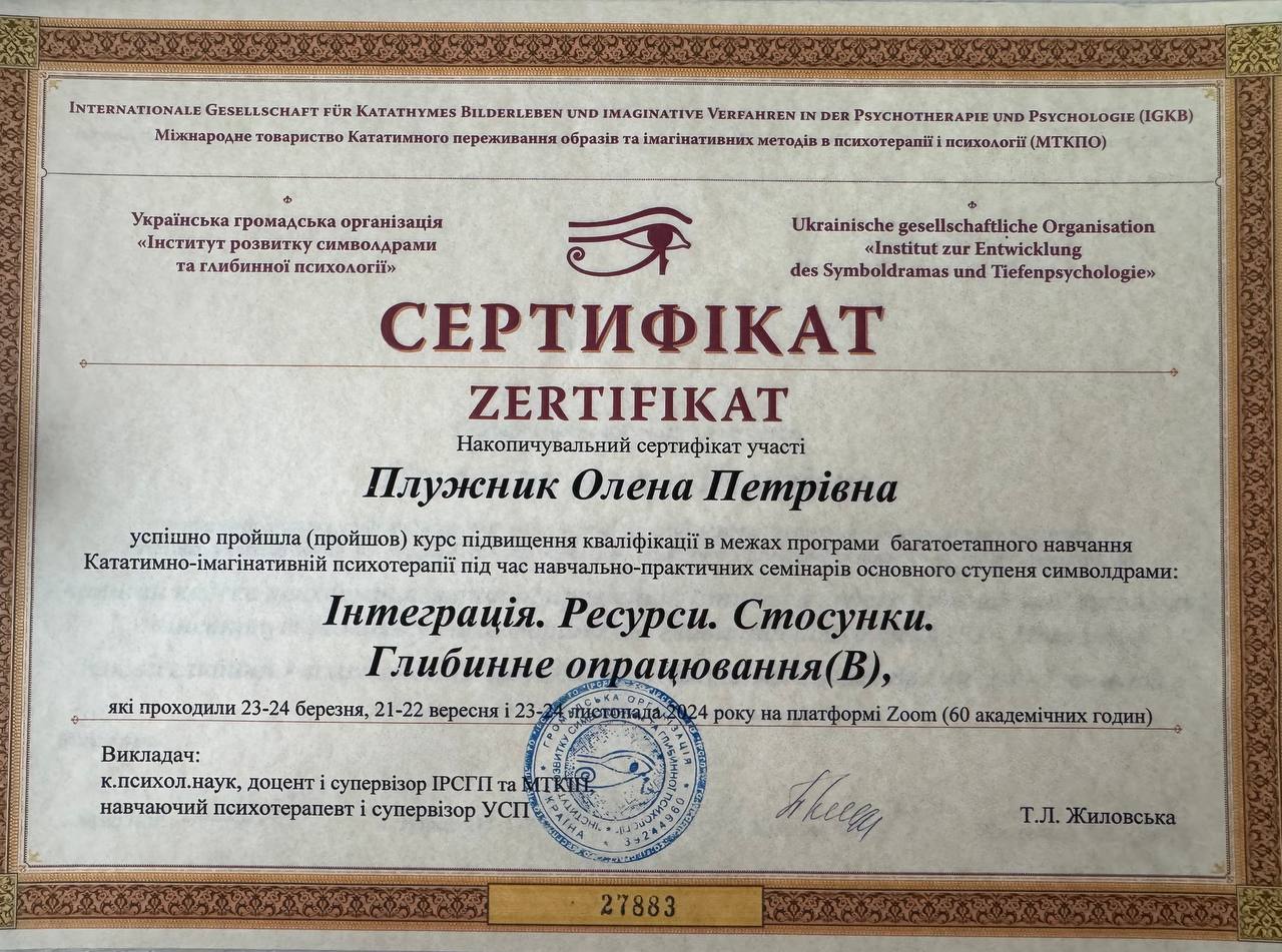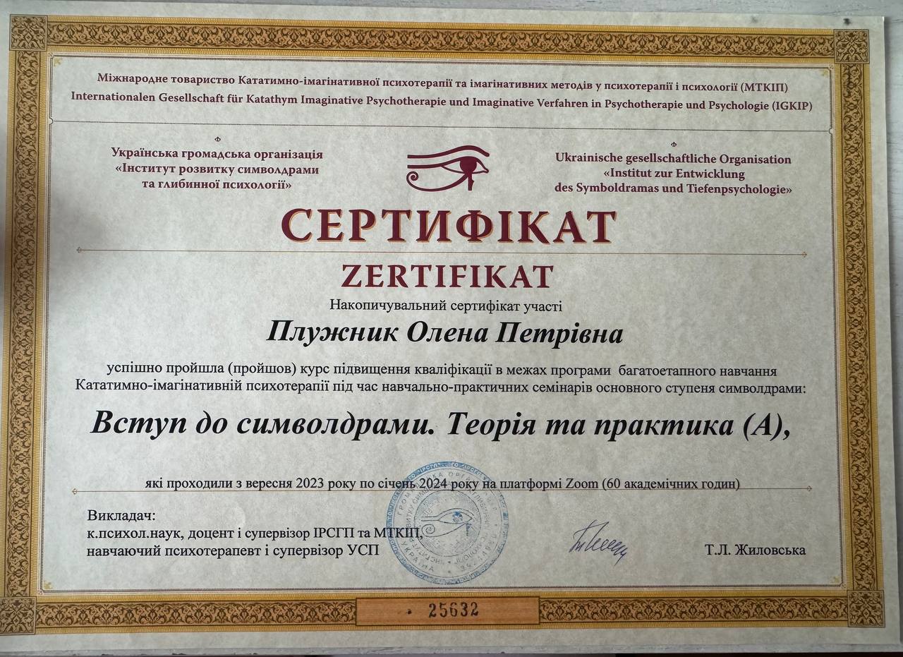 1.Диплом. Харьковский национальный педагогический университет им. Г.С. Сковороды. Специальность «Психология».