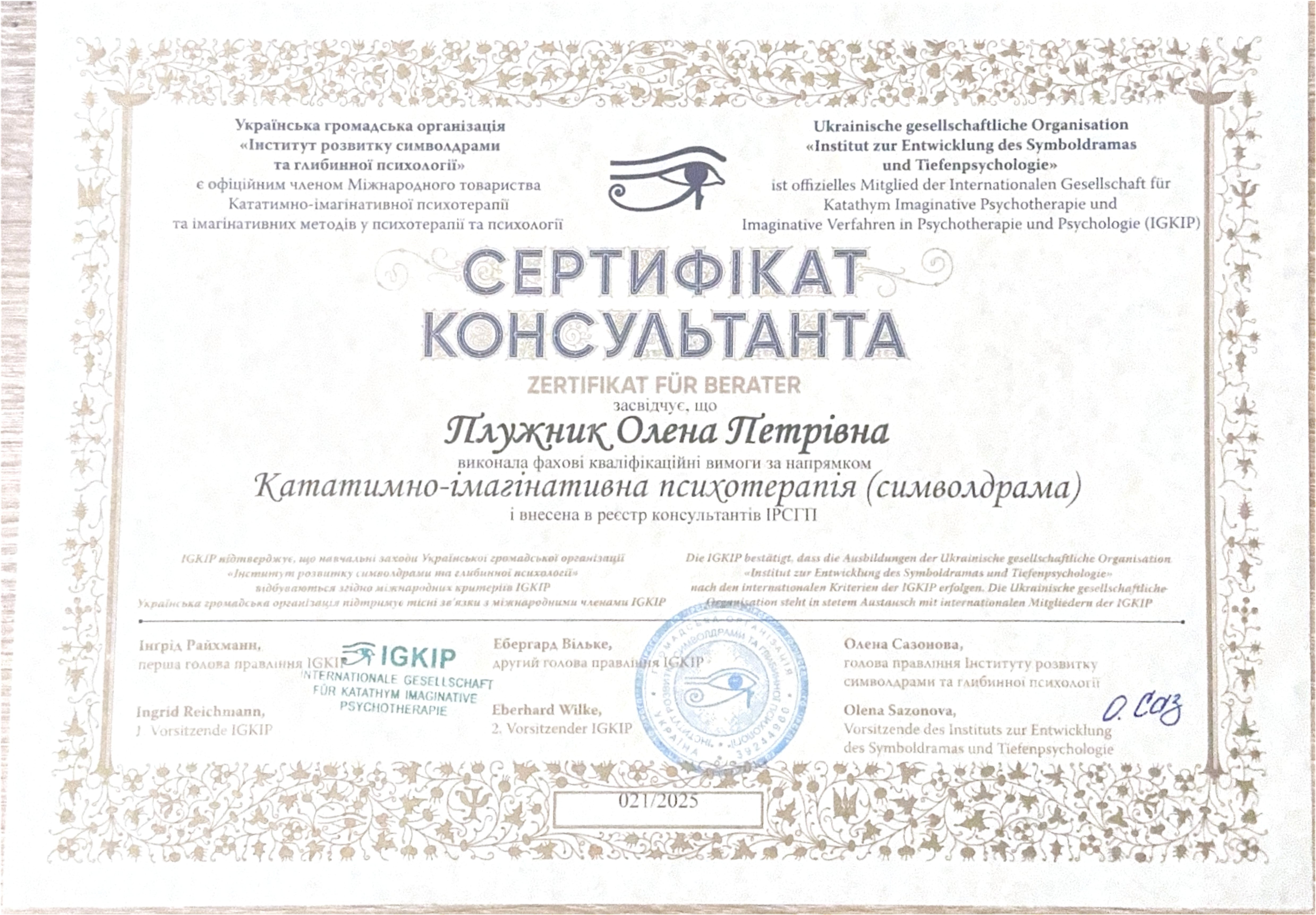 11. Сертификат. Институт психологии развития «МАКсимум». Метафорические карты и практические практики.