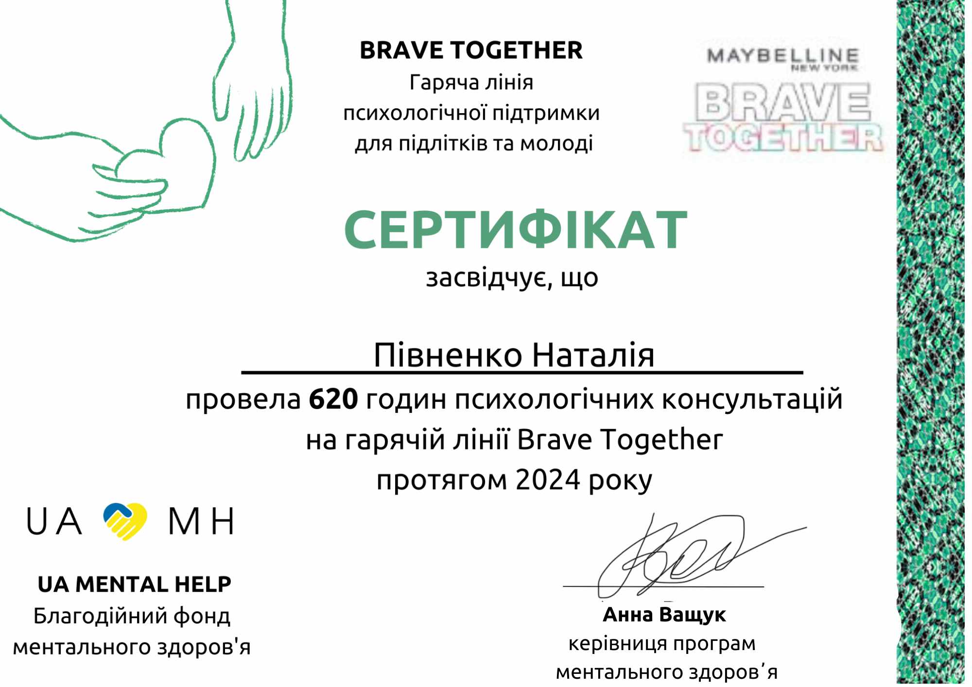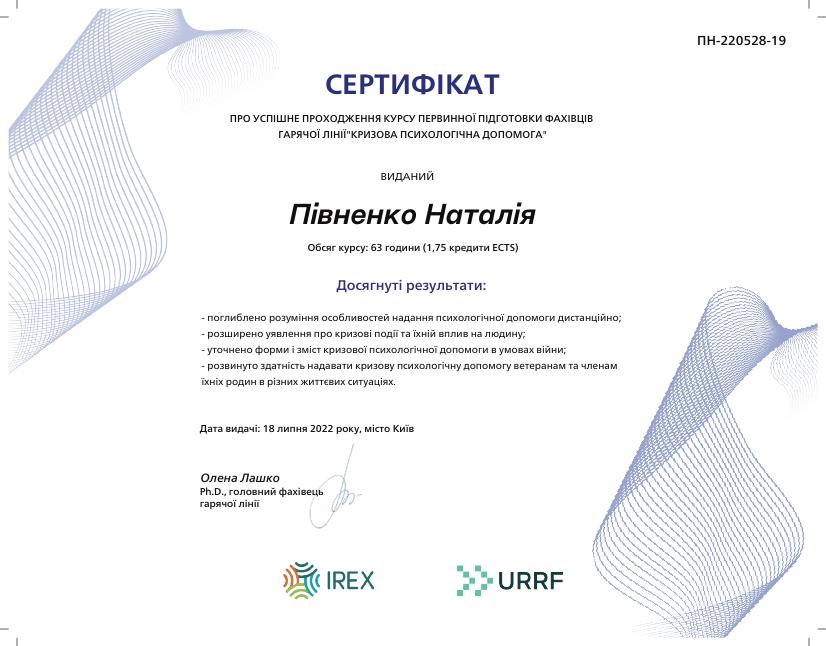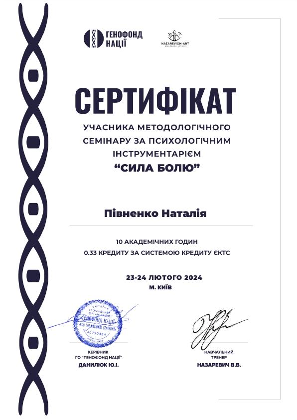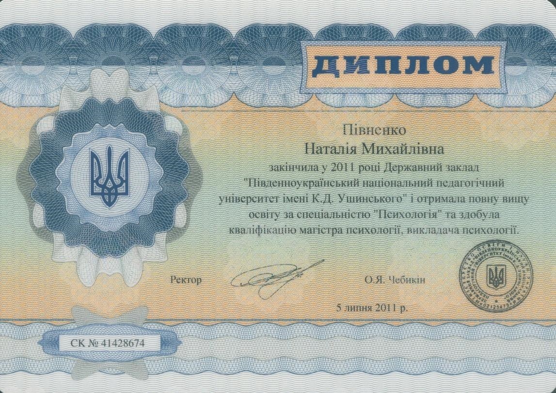 Повна вища освіта за спеціальністю "Психологія", психолог, магістр